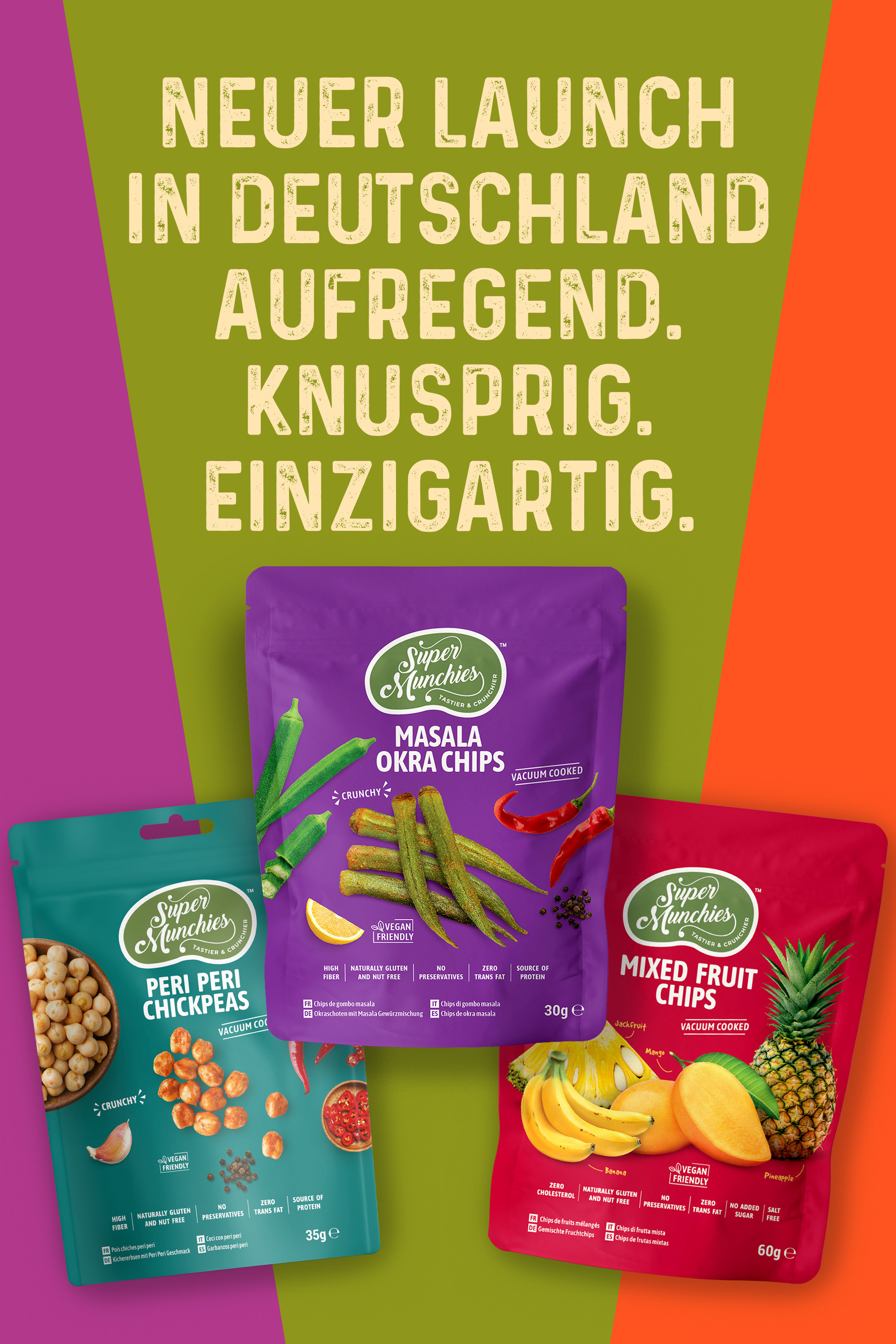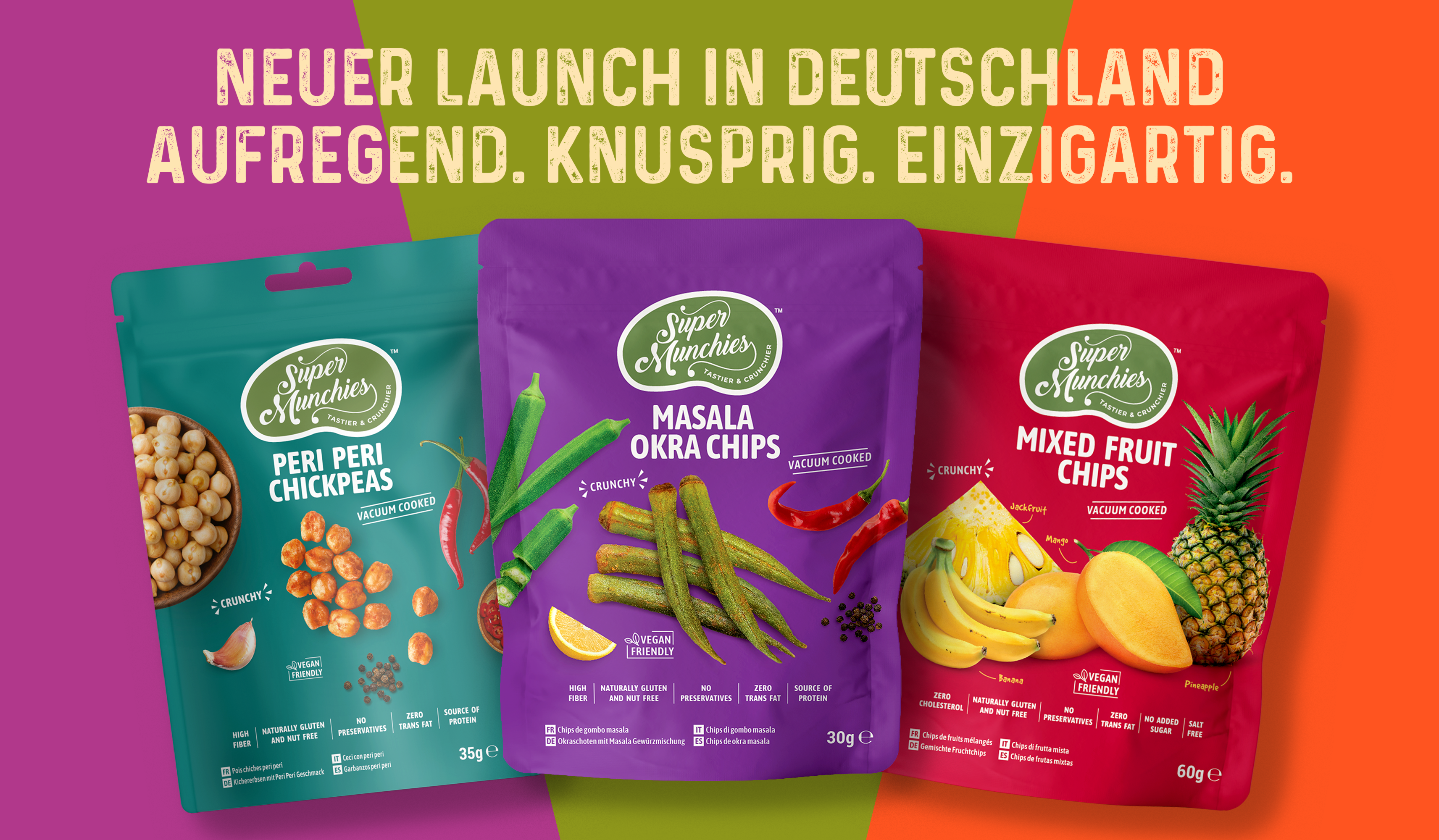 Gute Snacks sind einfach anders, besonders wenn sie aus echten Zutaten bestehen und voller Geschmack sind, den man tatsächlich schmecken kann. Super Munchies entfachen mit jedem Biss ein kleines Glücksgefühl – eines, das dich ganz nebenbei zum Lächeln bringt. Ob beim ersten Versuch oder bei einer Packung, zu der du immer wieder zurückkehrst – sie fühlen sich einfach richtig gut an. Es geht nicht nur ums Naschen. Es geht darum, etwas Ehrliches, Einfaches und wirklich Köstliches zu genießen.