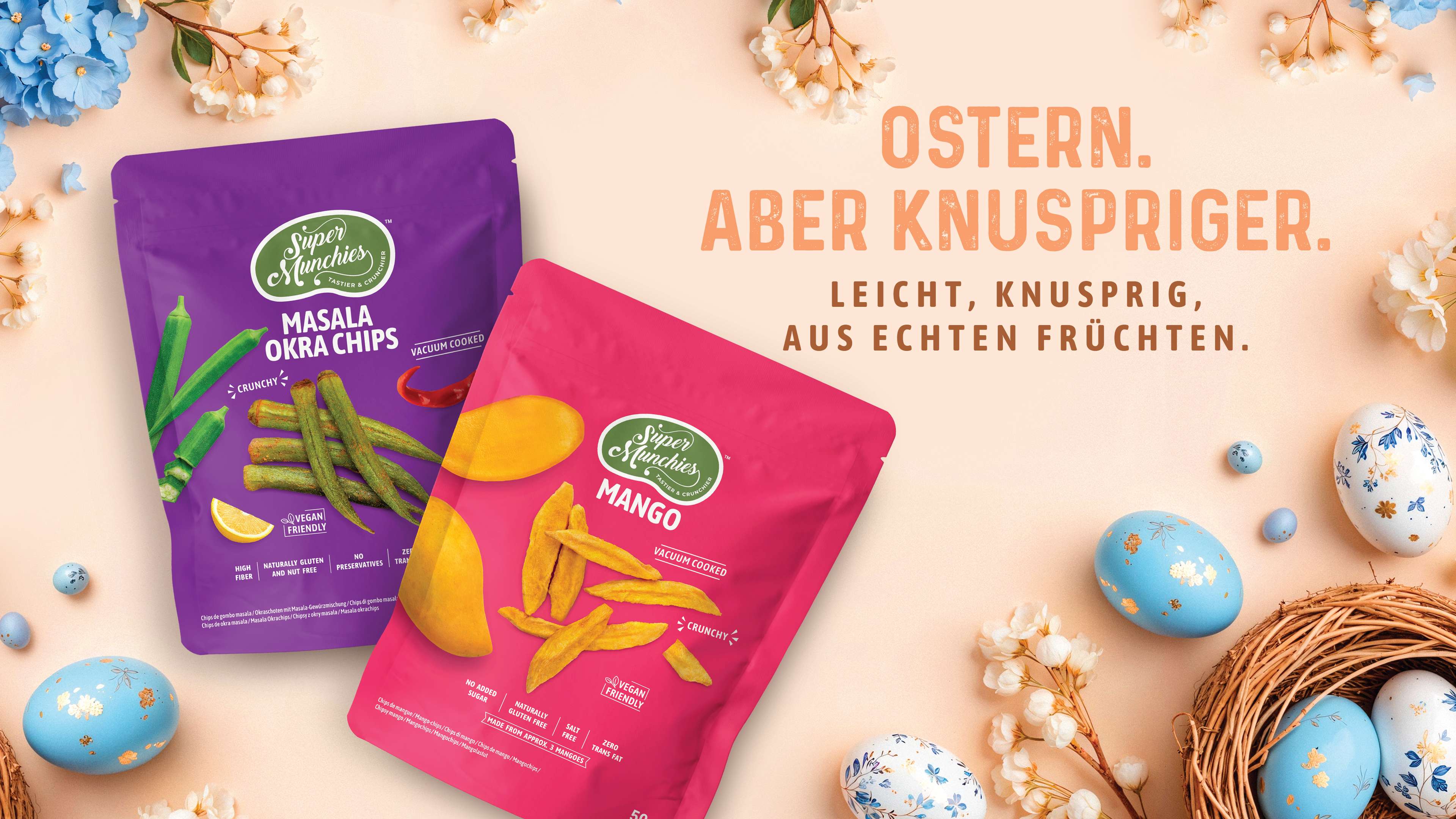 Ob eine kurze Pause im Büro, ein Moment zwischen Meetings oder eine wohlverdiente Auszeit im Alltag, Super Munchies passen immer perfekt. Hergestellt aus echten Früchten und Gemüsen bieten diese knusprigen Snacks puren Geschmack, eine leichte Textur und unkomplizierten Genuss. Keine Vorbereitung, kein Kleckern. Einfach öffnen, knuspern und mit voller Energie weitermachen.
