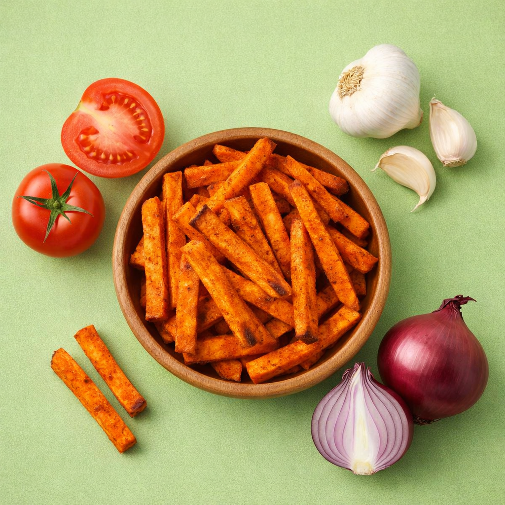 GEMÜSECHIPS WERDEN AUS ECHTEM GEMÜSE HERGESTELLT UND BIETEN EINE KNUSPRIGE UND NATÜRLICHE ALTERNATIVE ZU HERKÖMMLICHEN SNACKS.
