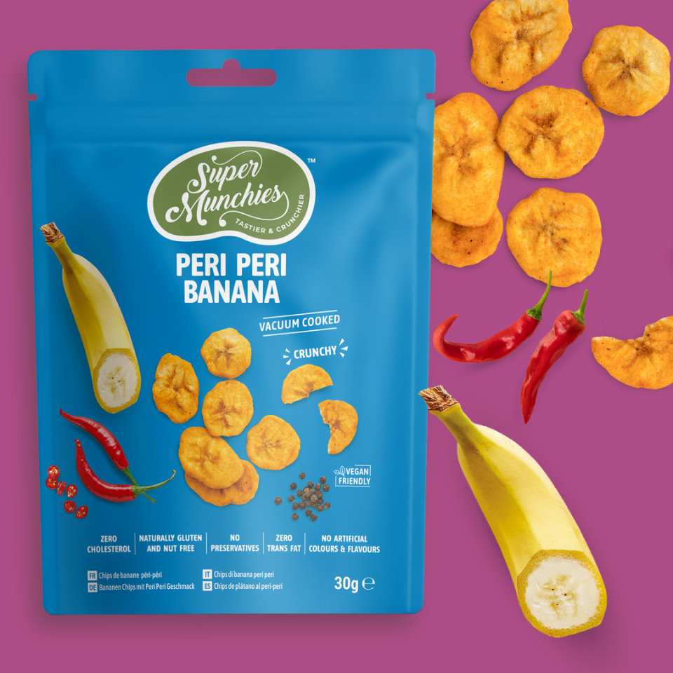 Sweet bananas meet bold spice. Our Peri-Peri Banana chips are vacuum-cooked for extra crunch and tossed in a spicy and tangy seasoning that builds with every bite. A sweet and spicy snack you won’t want to share.
