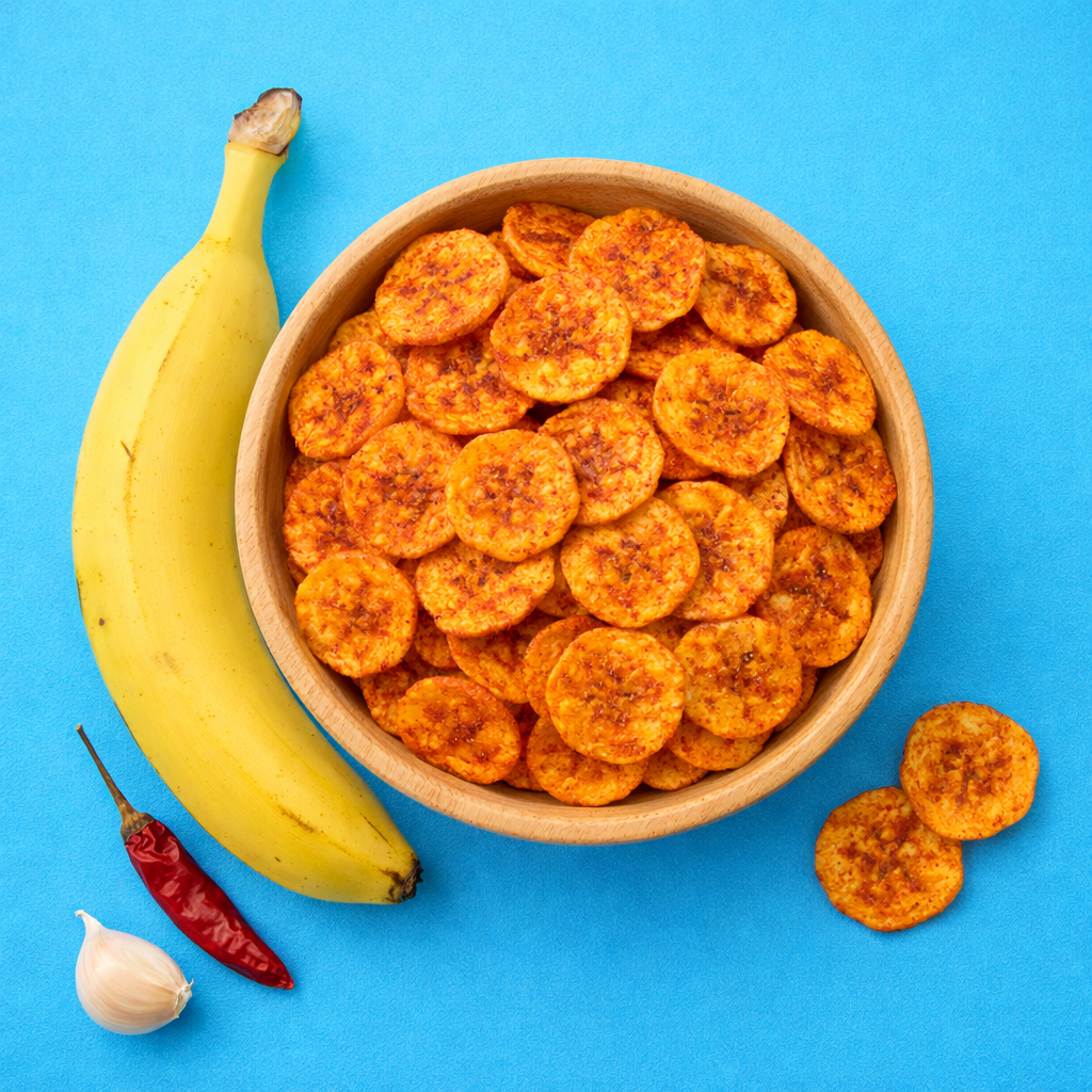 Ein besonderer Moment verdient einen besonderen Snack. Süße, reife Banane trifft auf eine feine Peri Peri Note und schafft ein Aroma, das verspielt, selbstbewusst und unverwechselbar ist. Leicht, knusprig und voller Charakter ist dieser Snack nicht nur etwas zum Essen, sondern zum Genießen Bissen für Bissen. Perfekt für alle, die Lust auf etwas leicht Süßes, leicht Scharfes und rundum Zufriedenstellendes haben.