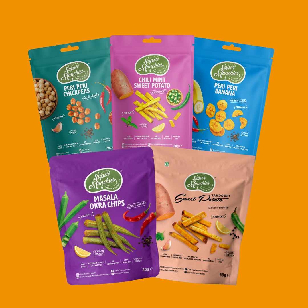 Verwöhne deinen Gaumen! Fünf kräftige Geschmacksrichtungen: Süßkartoffel mit Chili-Minze, Masala-Okra, Peri-Peri-Kichererbsen, Tandoori-Süßkartoffel und Peri-Peri-Banane. Vakuumgegart für den perfekten Crunch und verfeinert mit kräftigen Gewürzmischungen – ein wahrer Genuss!