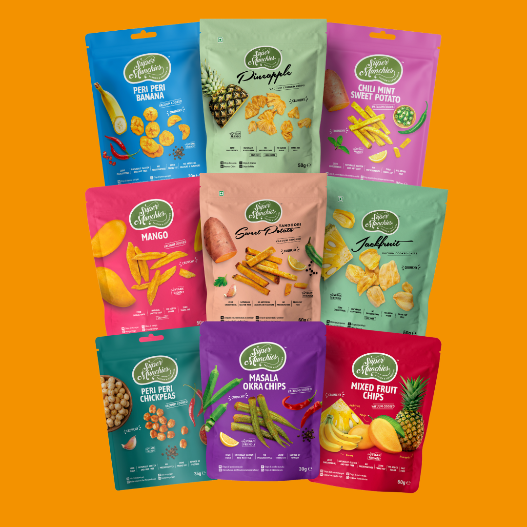 Diese 9er-Packung enthält beliebte Super Munchies-Sorten wie Mango, Jackfrucht, Ananas, Fruchtmix, Tandoori-Süßkartoffel, Peri-Peri-Kichererbsen, Masala-Okra, Peri-Peri-Banane und Chili-Minz-Süßkartoffel. Hergestellt aus echtem Obst und Gemüse und vakuumgegart für den perfekten Crunch, ist jeder Snack voller Geschmack – ganz ohne künstliche Zusätze.